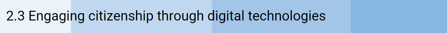 2.3 Participating in society through public and private digital services. Seeking opportunities to increase self-reliance and participatory citizenship with the help of suitable digital technology.
