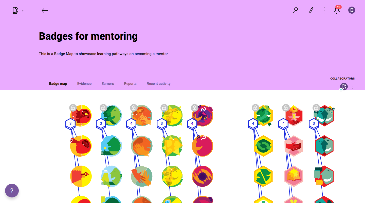 Such badge dependency relations are visually displayed to learners making them aware of learning opportunities, plan their badge pathways and monitor progress of achievements.