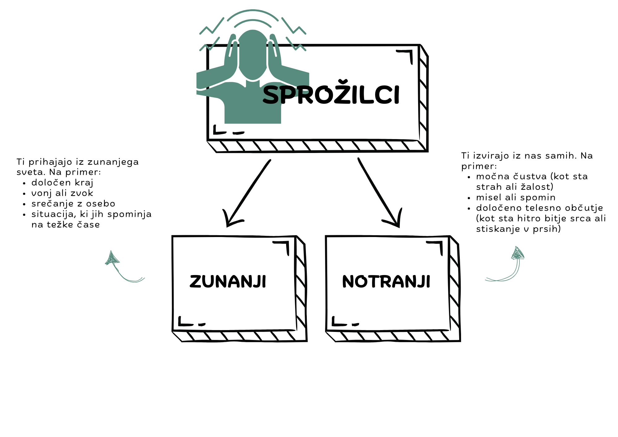 Ko nekoga vznemiri sprožilec, se lahko nenadoma počuti, kot da se je vrnil v boleč ali stresen trenutek, tudi če se je zgodil že pred časom.
