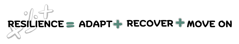 Resilience means being strong when life gets tough. It's about bouncing back, adapting, and moving forward after challenges. Here's a simple formula to remember: