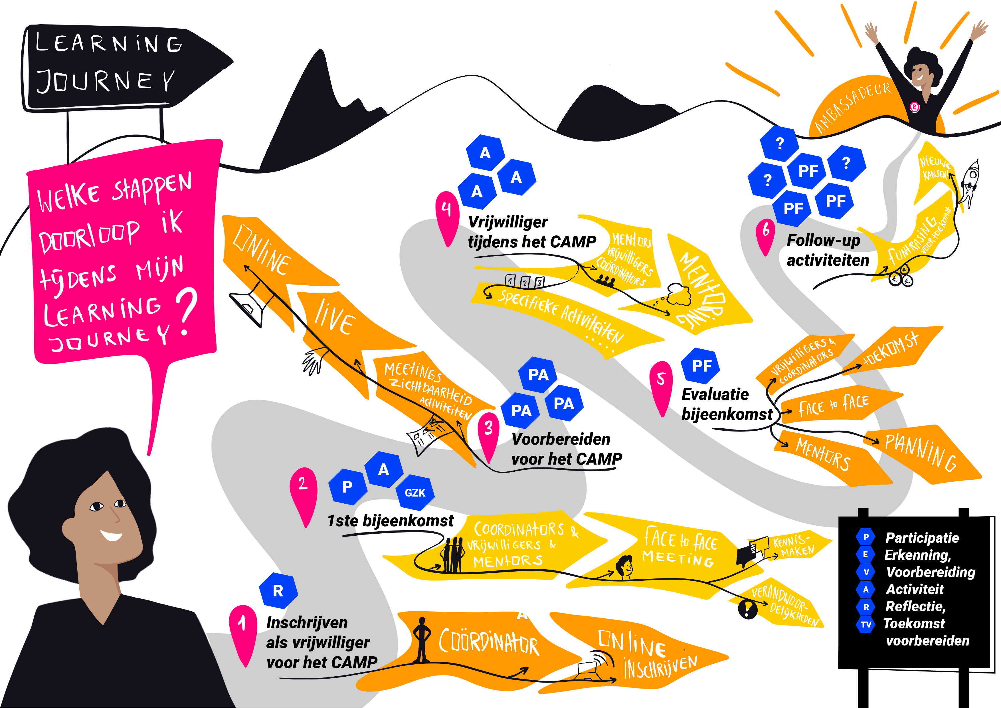 We hebben gekeken naar welke belangrijke dingen Robin kan ervaren in ons jeugd- en jongerencentrum, en hoe deze kunnen leiden tot vaardigheden en een houding die haar veranderen van Robin de Bezoeker naar Robin de Ambassadeur van Vrijwilligerswerk.