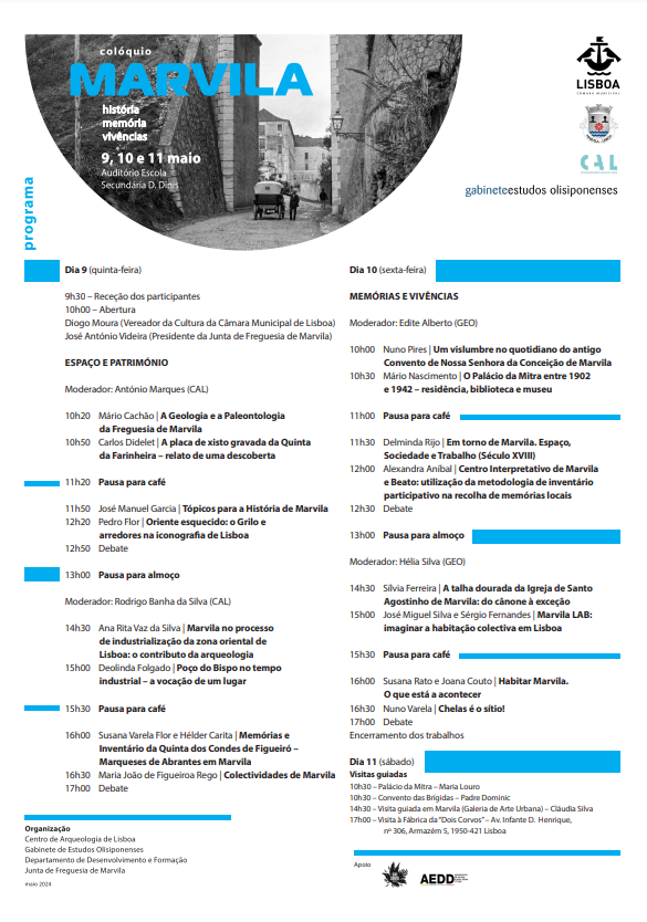 Evento enquadrado no ciclo anual de colóquios das freguesias da cidade de Lisboa, o Colóquio para a freguesia de Marvila é realizado pela CML, numa parceria entre o Departamento de Desenvolvimento e Formação, o Gabinete de Estudos Olisiponentes e a Junta de Freguesia de Marvila, no âmbito da oferta formativa da CML dirigida a públicos externos para 2024.