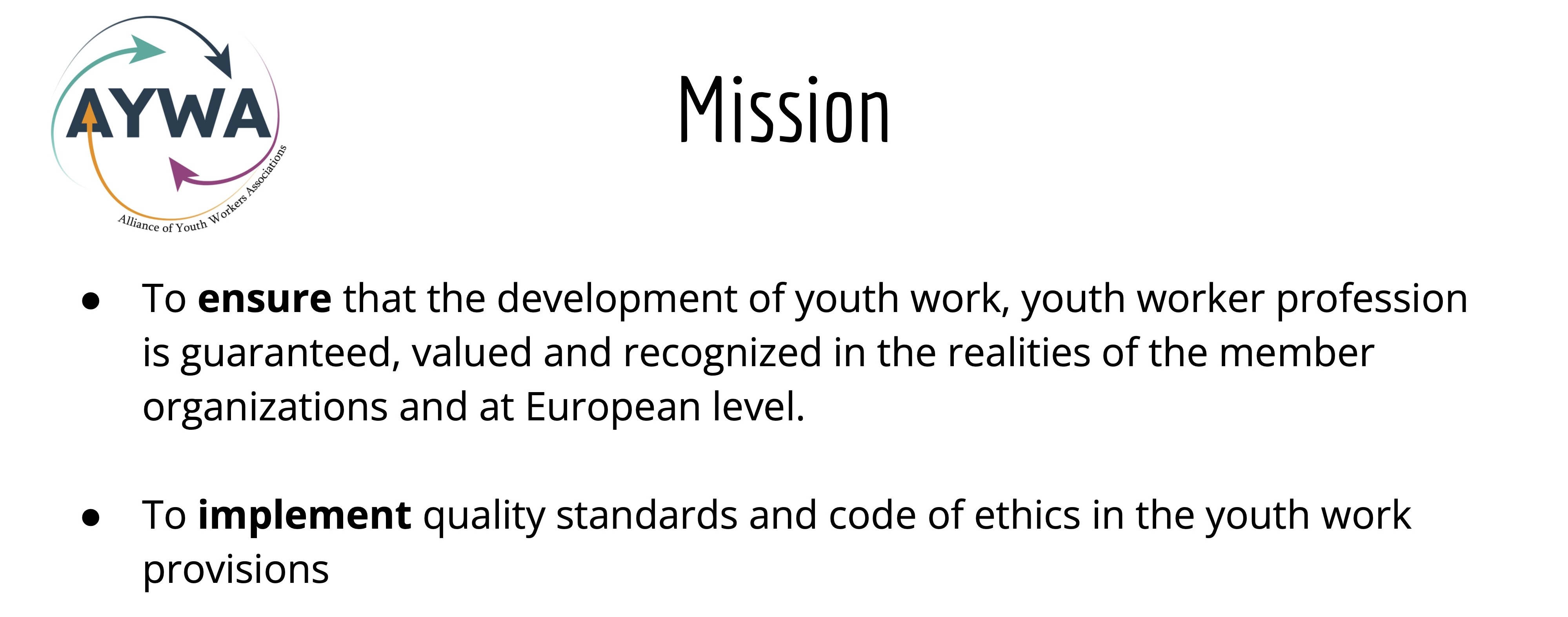 Badge earner learned about establishing the Alliance of Youth Workers Associations (AYWA), which advocates for youth work recognition, development, and quality youth work in Europe. The youth worker explored and familiarised themself with two youth work advocacy examples by AYWA.