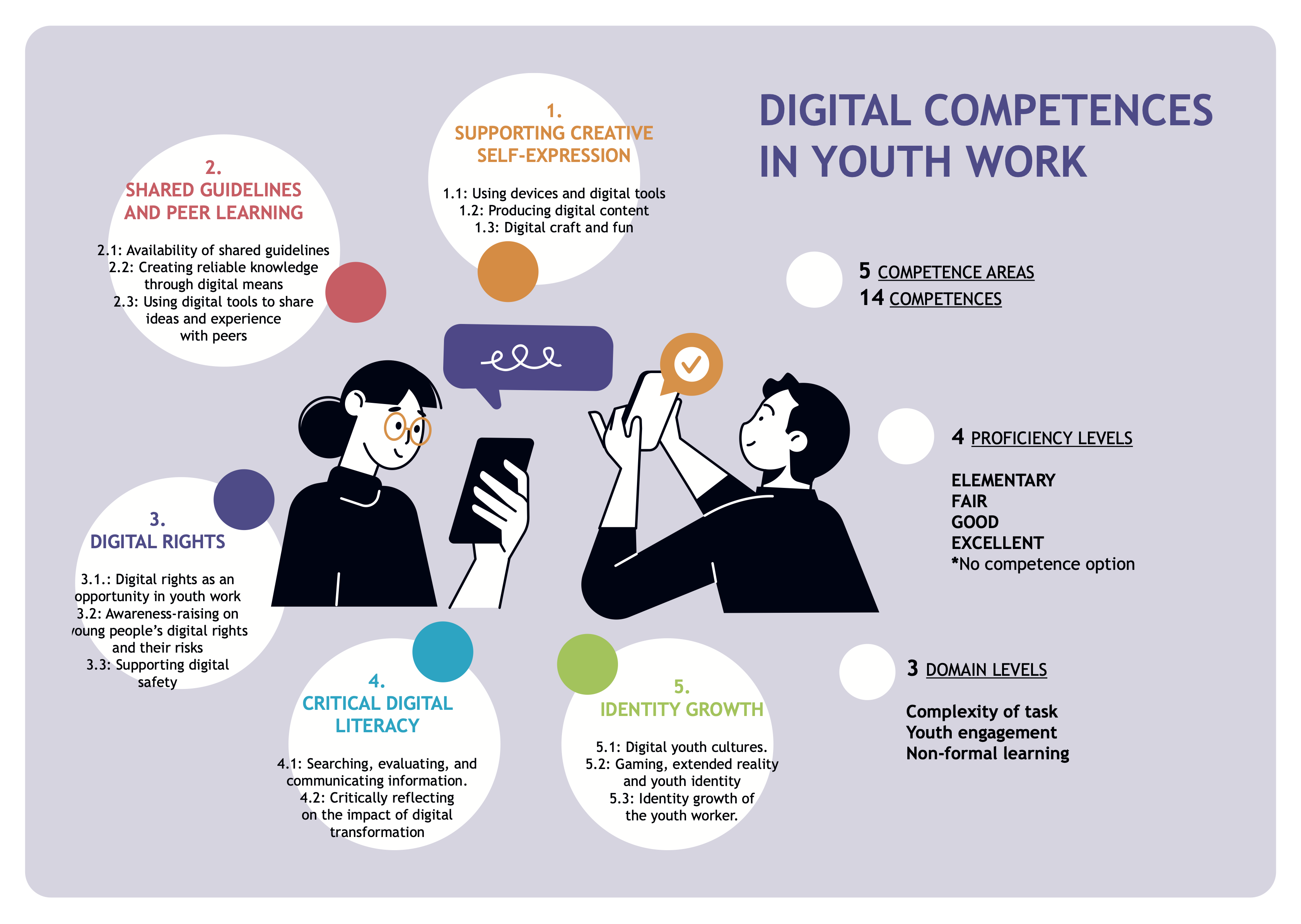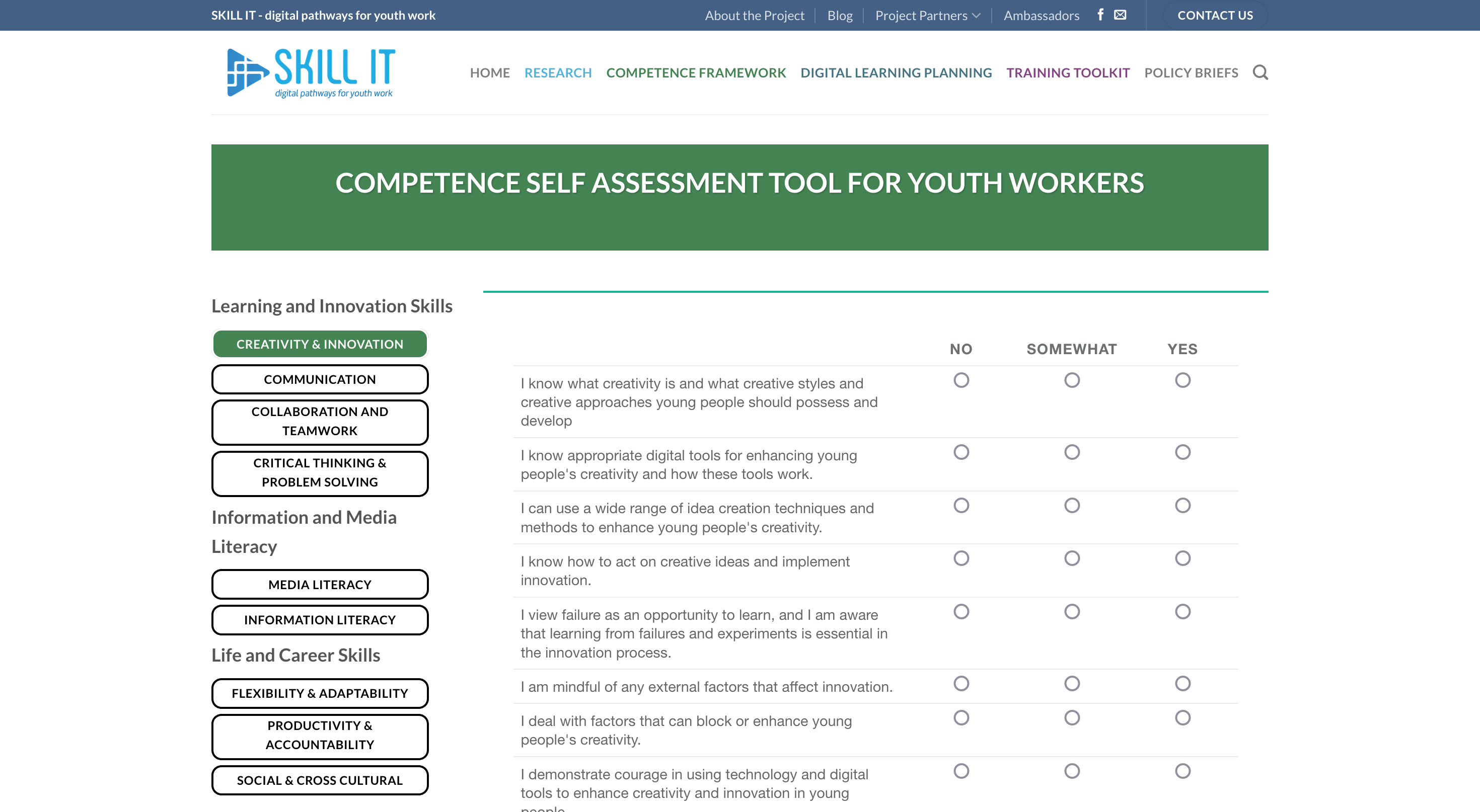 The Skill IT for Youth Competence Framework covers 9 Competences specifically relevant to youth workers who engage in Digital Youth Work and who are interested in supporting young people develop 21st century skills. Access online self-assessment tool.